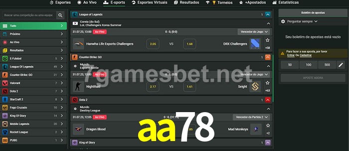 O aa78 oferece uma grande seleção de opções de apostas em e-sports com probabilidades competitivas